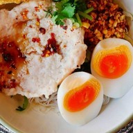 เส้นเล็กแห้ง ต้มยำหมูเด้ง ไข่ต้ม