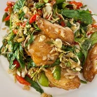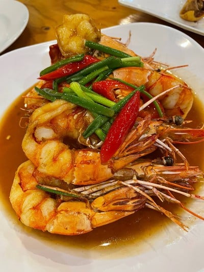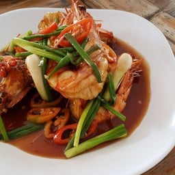 ร้่นอาหารทะเลเจ้าดังย่านนี้ อาหารหลากหลายค่ะ •ทอดมันกุ้ง(200฿) 🌕🌕🌕🌗🌑 -ทอดมันเหมือนทานตอนเด็กๆเลย เนื้อหนึบๆ แป้งกรุบๆ ดีใช้ได้เลยค่ะ •ปลาเก๋าทอดพริกเทีย (250฿) 🌕🌕🌕🌗🌑 -เนื้อปลาแร่ชิ้นทอดมา คลุกเคล้ากับพริกกระเทียม เค็มเผ็ด เข้ากันดูเพิ่มเติม