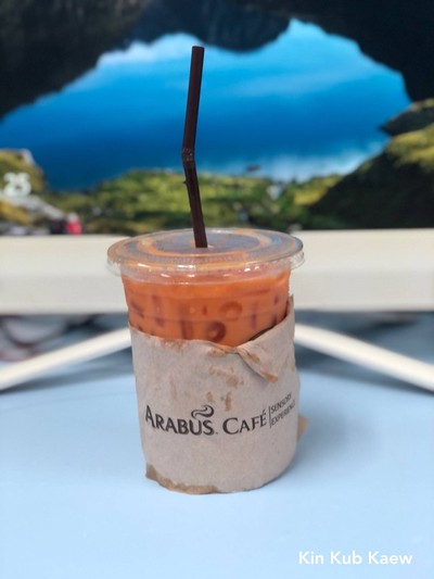 สั่งชาไทยของ Arabus Cafe บนบีทีเอสทองหล่อค่ะ ร้านเปิดแต่เช้า ชาไทยเย็น (40 บาท ใช้ rabbit ได้ลด 5 บาท) สั่งหวานน้อยค่ะ แต่รสชาติคือหวานมาก ๆ ไม่แน่ใจว่าคนขายฟังไม่ถนัดได้ยินแต่คำว่า หวาน หรือป่าวค่ะ ชาไทยหอมดีค่ะ ถ้าลดหวานสักหน่อยคงจะดีดูเพิ่มเติม