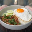 ผัดกะเพราเนื้อเค็มข้าวคลุก