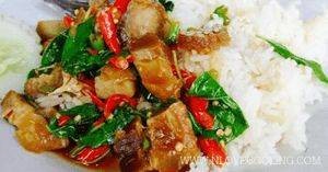 หมูสามชั้นทอดน้ำปลาราดข้าว