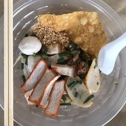 ร้านก๋วยเตี๋ยว 1 คูหา จอดรถหน้าร้าน ร้านสะอาดดี มีทั้งก๋วยเตี๋ยว ข้าวหมก ข้าวหมูแดง หมูกรอบ ราคาเริ่มต้นที่ 50 บาท สั่งเส้นเซี้ยงไฮ้ต้มยำ คุณยายบอกชิมก่อนค่อยปรุง สีสันฉูดฉาด รสชาติจี๊ดจ๊าด ค่อนไปทางเผ็ด ยังไม่ถูกปากเราเท่าไร คือเผ็ดนำ มันไม่นัวเเบบกลมกล่อม เครื่องเยอะดี ทั้งลูกชิ้น หมูแดง หมูกรอบดูเพิ่มเติม