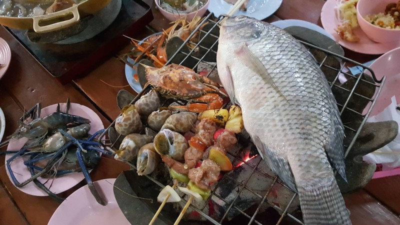 ร้านอยู่เยื้องๆ กับซีคอน เลยแมคโครมานิดนึงก็ถึงละค่ะ ราคาโดดเด่นมาก 169฿ต่อคน แต่ถ้ามาคนเดียวก็ 179฿ ร้านกว้าง และโล่ง ลมพัดสบายค่ะ แต่ถ้าเพิ่มเตาสำหรับย่างซีฟู๊ด ที่เป็นตาแกรงๆ ก็คิดเพิ่มคนละ 25฿ แนะนำว่าเพิ่มดีกว่าค่ะ ถ้าจะเน้นย่างนะคะ อาหารจะแบ่งเป็นโซนๆ ค่ะ โซนเนื้อสัตว์ จะมีหมูสไสด์บางๆ ทั้งแบบ 3ชั้น แบบเนื้อสันคอ เนื้อแบบนี้ย่างบนกระทองเหลือง อร่อยดีค่ะ สุกเร็วด้วยค่ะ อย่างอื่นก็มีกุ้งแม...อ่านต่อ