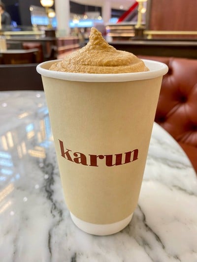 ร้านนี้มีที่นั่งพอสมควร เหมาะกับมามานั่งเม้ามอย ร้านนี้ตกแต่งที่นั่งด้วยหนังสีแดง ดูหรูหราหมาเห่า เมนูที่ได้ลองคือ - Blended Karun Thai Tea เป็นชาไทยปั่น เนื้อเกล็ดน้ำแข็งละเอียดมาก โรยผงทองด้านบนเพิ่มความหรูหราไปอีก สามารถเลือกได้ว่าจะเป็นหวานปกติ หรือหวานน้อย เราเลือกเป็นหวานน้อย รสชาติชาเข้มมาก ไม่เหมือนชาไทยปั่นทั่วๆไป เหมาะกับสายชาเย็นมาก - Karun House Gelato เป็นไอศครีมรส Signature Tha...อ่านต่อ