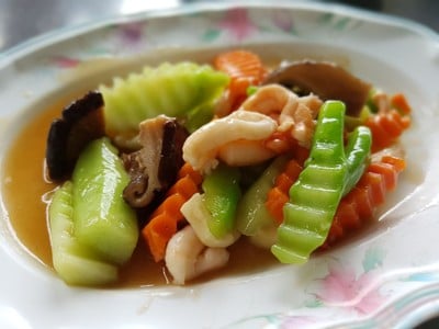 ร้านเก่าแก่ริมน้ำที่ให้บรรยากาศเก่าๆย้อนยุค บ้านไม้ที่ปรับปรุงสภาพ ทาสีเขียวสบายตาให้ความรู้สึกโปร่งๆผ่อนคลาย เปิดขายอาหารอร่อยๆคู่ตลาดปากเกร็ดมานานจนแทบไม่ต้องบรรยายสรรพคุณกันมาก เพราะสมาชิกวงในเองและรายการชวนชิมต่างๆให้คะแนนด้านบวกกันมากมาย ซึ่งก็ขอยืนยันอีกคนหนึ่งถึงความอร่อยกลมกล่อมของรสชาติอาหารจากที่มาชิมวันนี้ ก้านคะน้าผัดก้ามกุ้ง เป็นจานเด่นของร้าน ก้านคะน้าสุกแต่กรอบ ผัดได้อร่อยกลมกล่อ...อ่านต่อ