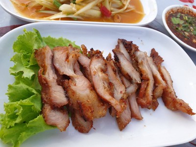 ร้านนี้ตั้งอยู่ริมถนนเลยครับ จากรามอินทรา เข้าซอยรามอินทรา 14 หรือ ซอยมัยลาภเข้ามาลุกพอสมควรครับ เลยสนามฟุตบอลบอลกลางซอยมาครับ เลยมาอีกนิดครับ ร้านจะอยู่ทางขวามือครับ มีที่นั่งด้านในร้าน และริมถนนครับ เบือกนั่งริมถนนครับ จอดรถต้องอาศัยจอดริมถนน บริเวณหน้าร้านครับ ดูรายการอาหารแล้วก็สั่งไปครับ รอไม่นานอาหารก็มาเสิร์ฟครับ "คอหมูย่าง" นุ่มดีครับ จิ้มน้ำจิ้มแจ่ว แค่นี้ก็ดีงามแล้วล่ะครับ "ส้มตำไทย...อ่านต่อ