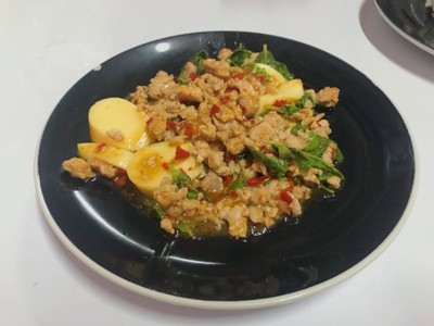 เลิกงานแล้วหิว ไม่รู้จะไปกินอะไรที่ไหน เลยเลือกร้านใกล้ๆ วันนี้เราสั่งมา 2 อย่าง คือ - เล้ง(น้ำ) ที่ต้องบอกว่าเล้งน้ำ เพราะเพื่อนเราบอกว่าที่นี่มีเล้งแห้งด้วย ถ้าไม่บอกว่าเล้งน้ำ เดี๋ยวจะได้เล้งแห้งมา (ไม่รู้จริงรึเปล่า) - ผัดกระเพราเต้าหู้หมูสับ ราคาไม่แพง รสชาติอร่อยดี ปริมาณอิ่มมากสำหรับ 2 คนดูเพิ่มเติม