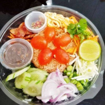 อร่อยมากยิ่งขึ้นเมื่อทานคู่กับข้าวคลุกกะปิ ถ้าลูกค้าต้องการแยกเครื่องเคียงหมายเหตุมาได้นะคะ่ 📢📢ผักชี🧐ที่เห็นในภาพใช้เพื่อประกอบภาพถ่าย📌ปกติทางร้านมิได้ใส่ให้ลูกค้านะคะ✖️😊 💚🍚ข้าวเปล่าคลุกกะปิ ของที่ร้านจะจะมีลักษณะออกมันๆนิดหน่อยถ้าคนที่เคยทานข้าวมันไก่เม็ดข้าวจะออกแนวประมาณใกล้เคียงกัน✅ ทางร้านได้แจ้งรายละเอียดของอาหารได้ชัดเจนลูกค้าโปรดอ่านทำความเข้าใจกับอาหารก่อนกดสั่งนะคะ🙏🥰