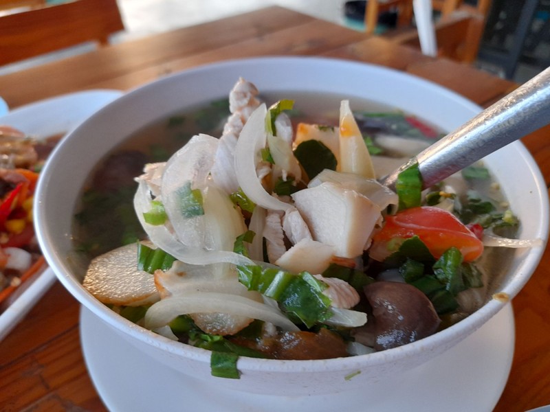 ร้านอยู่ในซอยลึกหน่อย เข้ามาเหมือนจะหลง วิว : บรรยากาศดี แบ่งเป็น 2 ชั้น ชั้นบนวิวดี เห็นวัดหลวงพ่อโสธร ช่วงกลางคืนมีไฟประดับ สวยงาม มีลานว่างข้างๆ ลมพัดเย็นสบาย ลานเด็กเล่นใหญ่ เด็กชอบแน่นอน อาหาร : ยำรสแซบ ปลาร้านิดๆกำลังดี มีทั้งปู กุ้งตัวใหญ่ ปลาแซลมอน ไหลบัว ปลาหมึก คอหมูย่างมันน้อย นุ่ม ต้มยำไก่บ้าน ไก่เนื้อหั่นเป็นชิ้นๆดูเพิ่มเติม