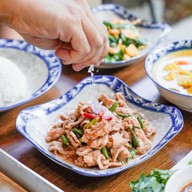 เคยกินร้านนี้ที่สาขาเจริญกรุง วันนี้เห็นเปิดสาขาใหม่ใกล้บ้าน แถวสาทร เลยกดสั่งไม่ต้องคิด อาหารอร่อย รสชาติแบบที่คุ้นเคย ได้บองเมนูแปลก 2 อย่าง คื -หมูคั่วข่า เผ็ดนิดๆ ออกซ่าข่า อร่อยดี - กุ้งผัดใบชะอม เป็นกุ้งสับ ผัดกับชะอม พร้อมซอส เปรี้ยว หวาน เผ็ดนิดหน่อย ทานกับข้าวร้อนๆ อร่อยดี ส่วน ต้มทิกุ้ง หอมๆ มันๆ กุ้ง ชะอม สะตอ อร่อยเหมือนทานที่ภาคใต้เลย , แกงส้ม ค่อนข้างเผ็ด อร่อยแบบแกงเหลือง , ใบ...อ่านต่อ