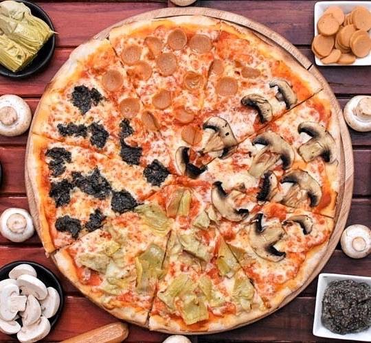 Tomato Sauce, mozzarella, mushroom, soy sausage, artichoke, truffle sauce