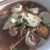 แวะทานเตี๋ยวอีกแล้ว ร้านอยู่ถนนเคหะร่มเกล้า จอดรถริมถนนเอา ดูช่วงเวลาด้วยน้า... ร้านกว้างขวาง ตอนเดินเข้าร้าน พนักงานก้มหน้ากดโทรศัพท์ สั่งไปไม่นานก็มาเสิร์ฟที่โต๊ะ "เกาเหลาเย็นตาโฟต้มยำ" (50฿) ได้มาชามใหญ่ ผักบุ้งซ่อนตัวอยู่ด้านล่างเยอะเลย รสชาติยังปรุงไม่โดนใจ T^T เหมือนขาด อูมามิ มั้ง - เย็นตาโฟ รู้สึกเจือจางมากๆ - ต้มยำ ปรุงมาแบบมีแต่ถั่ว ปล. เอาไว้แก้ตัวรอบหน้า เตี๋ยวธรรมดาละกันดูเพิ่มเติม
