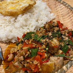 วันนี้ทานแบบ Hybrid ค่ะ หมูสับกับหมูกรอบ เป็นกะเพราที่ไม่ได้ใสผักอื่นใดเพิ่มเลยนอกจากใบกะเพราค่ะ ลักษณะการผัดยังเป็นกะเพรา กทม. นะคะใส่น้ำมันหอยเยอะ ทุกจานรวมราคาไข่ดาวมาแล้วค่ะ มีให้พร้อมเลย นอกจากกะเพราก้อมีพวกข้าวผัดด้วยค่ะดูเพิ่มเติม