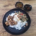 ร้านข้างแกงเปิดใหม่ แทนร้านขายของ20฿ (Twenty shop) ราดข้าว1 อย่าง20บาท 2อย่าง 30 บาท ให้ค่อนข้างเยอะ ใช้ข้าวหอมมะลิ กับข้าวมีให้เลือกเยอะเหมือนกัน วันนี้สั่งกระเพราไข่ดาว+หมูหวาน 30 บาท กินอิ่มเลย มีติ่มซำด้วยนะ แต่ยังไม่ได้ลอง ในร้านเข้ามาอารมณ์เหมือนโรงอาหาร เดินสั่งแล้วไปจ่ายเงินก่อน น้ำดื่มฟรี หรือจะสั่ง น้ำจาก คาเฟ่ 20 ก็ได้เช่นกันดูเพิ่มเติม