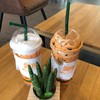 ผ่านมาเติมน้ำมันก่อนกลับกทม. เห็นร้านกาแฟในปั๊มมีที่นั่งเยอะดี ลองแวะซักหน่อย มีเมนูใส่เฉาก๊วยชื่อหยกเขียว Green tea freppe with grass jelly ราคา65บาท รสชาติดีใช้ได้ เข้ากันมากกว่าที่คิด อีกเมนูแนะนำคาปูชิโน่เย็นสั่งหวานน้อย 50บาท แก้วใหญ่ดี รสชาติดี พนักงานบริการดี ร้านนี้ผ่านลองแวะมาดูกันได้ดูเพิ่มเติม