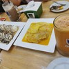 ร้านเป็นตึกห้องเดียว มีโต๊ะนั่งทานได้ วันนี้อยากทานโรตีกรอบๆ สั่ง โรตีทิชชู่นม+ไมโล(59฿)// ใส่จานใหญ่ แบ่งเป็น6ชิ้นมา โรตีกรอบมาก ราดนมข้น โรยผงไมโลมา หวานเข้มข้น อร่อย อีก2เมนู เป็นโรตี จิ๋ว กับโรตีข้าวโพด(ใส่ไข่มาด้วย) 2เมนูนี้จะไม่กรอบ ราดนมข้นมา สั่งเครื่องดื่มมาด้วย 2แก้ว เป็นแดงโซดา กับเขียวโซดา แก้วใหญ่ จุใจ (55฿/แก้ว)ดูเพิ่มเติม