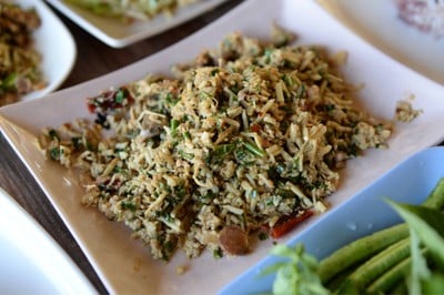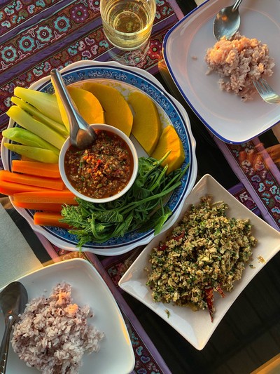 ร้านอาหารอาข่าบนดอยช้าง มีเมนูให้เลือกพอควรทั้งผัด ทอด ต้ม เราสั่งเมนูแนะนำ ลาบหมูอาข่า หมูนุ่ม ออกรสลาบ ไม่เผ็ดมาก อร่อยดี (120 บาท) หอมชูผัดหมู ผักกรอบ อร่อยมาก แต่ติดจะเค็มๆหน่อย (120 บาท) ยำหมู อันนี้ก็ใช้ได้ แต่หมูเหนียวไปนิด (120 บาท) ข้าวเป็นข้าวสวยผสมไรส์เบอรี่ ร้านมีที่จอดรถ มีเครื่องหัวและชุดอาข่าให้ใส่ถ่ายรูปดูเพิ่มเติม
