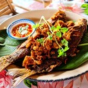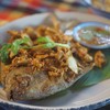 อ่านรีวิวมาแล้วแต่น้องปอบก็ยังลืมว่าต้องจองมาก่อน มาถึงหน้าร้านเห็นป้าย No walk in คิดว่าจะไม่ได้กินซะแร๊ว แต่ก็ไปเจรจากับทางร้าน สรุปคือ ได้กิน แต่ต้องรอให้ทางร้านทำอาหารให้โต๊ะจองเสร็จก่อน สั่งปลาจาระเม็ดทอดขมิ้น ฿400, หมูโค ฿150, ชุดน้ำพริกกะปิ ฿350 (แพงค่ะ) และแกงส้มปลากะพงออดิบ ฿200 ปลาจาระเม็ดทอดขมิ้น เนื้อปลานุ่มแน่นดี รสกลาง หมูโค ไม่ค่อยเหมือนหมูโคร้านอื่นที่เคยทาน ออกจืดๆ ชุดน้ำพริ...อ่านต่อ