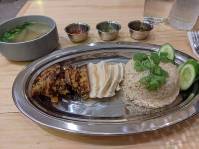 เป็นร้านข้าวมันไก่สไตล์ไม่ซ้ำกันแน่นอน ร้านค่อนข้างเล็กครับ มีที่นั่งน่าจะ 4-5 ที่ แต่ไม่ได้นั่งติดจนน่าอึดอัดครับ - ข้าวมันไก่คอมโบ (159.-) เป็นทั้งไก่ซูวีและไก่ทอด ตัวไก่ซูวีคือเนื้อนุ่มมาก ราดน้ำที่ไม่ได้ออกรสชาติมาก แต่เสริมให้ไก่นุ่มไปอีก ทานคู่กับน้ำจิ้มไก่ ตัวน้ำจิ้มออกจีนๆหน่อย คือไม่ได้เค็มและไม่เผ็ด อธิบายไม่ถูกครับ แต่อยากทานรสชาติจัดกว่านี้มากกว่า ส่วนไก่ทอดไม่ค่อยร้อน เนื้อหนา ...อ่านต่อ