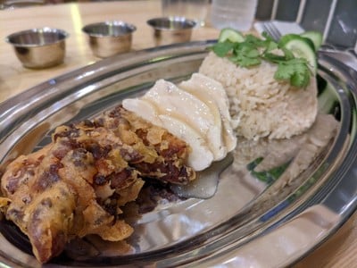 หุง 🍚 ร้านข้าวมันไก่ร้านนี้แอบเล็งไว้สักพักแล้ว เป็นเมนูข้าวมันไก่ที่อลังการมาก มีองค์ประกอบหลายอย่างเลย • เริ่มด้วยข้าวมันที่หุงมาเรียงเม็ดสวยงาม หอมมันไก่ กระเทียม ขิง ชัดเจน ข้าวไม่แฉะเลย กำลังดี • เนื้อไก่ส่วนสะโพกชิ้นหนา มีทั้งแบบต้มและแบบทอด แบบต้มเขาใช้วิธีซูวีเลยได้ไก่เนื้อนุ่ม ฉ่ำ หนังนุ่ม มันน้อย ไม่เลี่ยน ส่วนไก่ทอด เอาไปอุ่นใน Air Fryer เล็กน้อย กลับมากรอบ เนื้อไก่ยังนุ่ม ไม่แห้งเ...อ่านต่อ