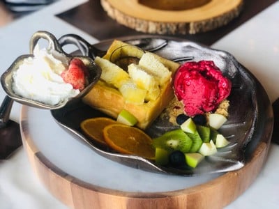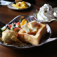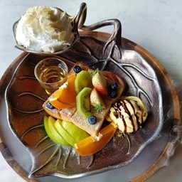 ร้านอยู่ใน รร.ชูชัยบุรี จอดรถทางด้านหน้าแล้วจะมีรถกอล์ฟพามาส่ง ร้านอยู่ติดคลองบรรยากาศสบายๆ แต่ภายในตกแต่งได้สวยงามมาก😍 มีอาหารและของหวานให้เลือกมากมาย ตกแต่งมาสวยเลยค่ะ 🥞ชินนามอน บัน+ไอศครีมซอลคาราเมล ตัวขนมปังจะคล้ายบริยอช นุ่มๆโรยชินนามอนมาอย่างหอมเลย ส่วนตัวไอศครีมสามารถเลือกรสชาติได้ดูเพิ่มเติม