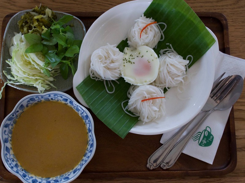 #WongnaiHNY2023 มาแถวนี้ชอบแวะมาซื้อขนมหวานของแบรนด์นี้ พอเขาเปิดร้านคาเฟ่เลยแวะมาลองกินอาหารของร้าน ร้านมีที่จอดรถอยู่น่าร้าน น่าจะจอดได้เกือบสิบคันได้ เข้ามาจะเจอเคาเตอต์สั่งอาหาร กับบรรดาขนมหวาน เดินเข้ามาทางขวามือ จะเป็นที่นั่งทานอาหาร มีไม่ค่อยเยอะ เมนูอาหารกับเครื่องดื่มมีให้เลือกไม่เยอะ ร้านเขาเน้นขายขนมไทยของร้าน ปกติชอบกินข้าวฟ่างกวน ข้าวเม่าสด ครั้งนี้สั่งขนมจีนน้ำยากับข้าวแพนงซี่โครง...อ่านต่อ