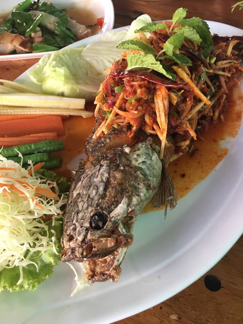 ปลาช่อนลุยสวนกับพล่ากุ้งอร่อยดี ต้มยำทะเลพอใช้ได้ หมู/เนื้อแดดเดียว เหนียวมาก รวมๆก็ ok บริการก็เฉยๆอ่านต่อ