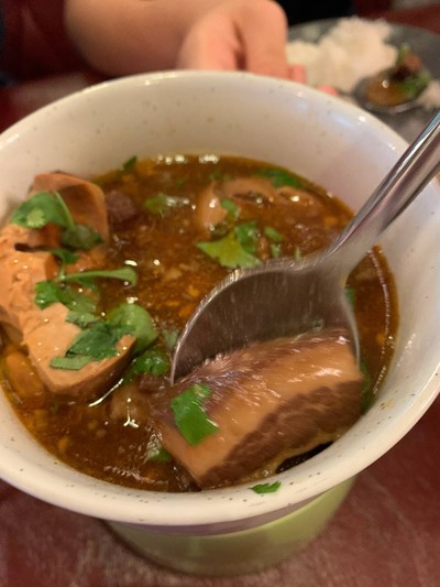 (เมืองราชบุรี) ร้านอาหารเก่าแก่ในเมืองราชบุรีค่ะ ร้านไม่ใหญ่มาก บรรยากาศ+การแต่งร้านแบบ vintage หน่อยๆ ร้านตั้งอยู่บน ถ.ก้อนทอง เป็นซอยเล็กๆ ทางแคบไม่มีที่จอดรถค่ะ ต้องหาที่จอดริมถนนใหญ่แล้วเดินมาที่ร้าน เมนูที่ร้านจะเน้นอาหารไทยค่ะ มีเมนูให้เลือกเยอะมากๆ เลือกลองไป 5 เมนูตามนี้เลย 1. พะโล้ไข่เค็ม - รสชาติดีเลยค่ะ น้ำพะโล้ไม่หวานจัด ออกแนวกลมกล่อม ไข่เค็มก็ไม่เค็มจัดนะคะ รวมๆ คือดีเลย ติดตรง...อ่านต่อ