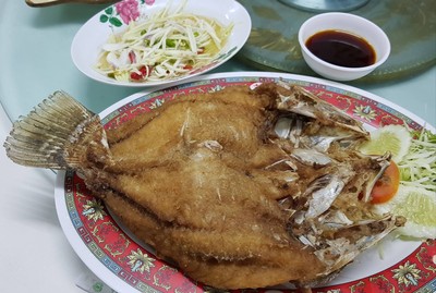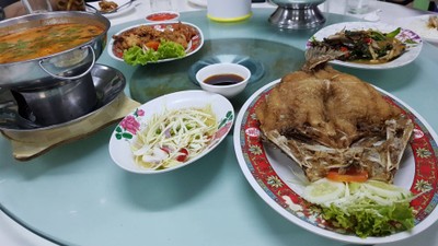ร้านนี้ น้ำมะพร้าวหวานดีนะ ปูนึ่ง ก็สดดี แต่ สั่งเป็นตัวดีกว่าสั่งกรรเชียงปู แต่น้ำจิ้มซีฟู้ดไม่เด็ดมาก ไม่ค่อยเผ็ดร้านนี้ หอยเชลล์อบเนย ใช้ได้ค่ะ ปลากะพงทอดน้ำปลาทอดดีนะ ใช้ได้ ต้มยำกุ้งโอเค เข้มข้น น้ำแกงเค็มไปนิดด้วยซ้ำ ทอดมันปลา ทอดมันกุ้ง กลางๆ บางอย่างก็ลืมถ่ายรูปมา กั้งทอดกระเทียม เฉยๆ ข้าวผัด กลางๆ ผัดรสเหมือนใส่เนย (รึป่าวน้า) ร้านนี้ราคาไม่แพงดูเพิ่มเติม