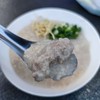 ร้านติดถนนใหญ่อยู่ใต้สะพานลอย จอดริมถนนได้ มีโต๊ะในร้าน 3 โต๊ะ ขนาดตึก 1 ห้อง มีกระเทียมเจียววางไว้ให้บริการบนโต๊ะ ส่วนผัก (ขิงกับต้นหอม) แช่เย็นใส่ถุง นำมาวางให้บนโต๊ะ ไม่ได้ใส่ถ้วยมาให้ โดยรวมรสชาติดีใช้ได้ หมูอร่อย มีบริการเดลิเวอรี่ด้วย ราคาค่อนข้างสูง ไข่ลวก ราคาฟองละ 10 บาทดูเพิ่มเติม