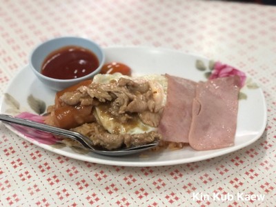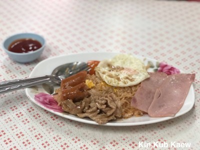 ด้านหน้าของร้าน ด้านขวาจะเป็นตู้ขายข้าวมันไก่ของอาเฮีย ส่วนฝั่งซ้ายเป็นร้านตามสั่งของอาเจ้ เราเป็น FC อาเจ้ อาหารจานเดียวง่ายๆ แต่เจ้เค้าผัดได้มีรสชาติโดดเด่นไม่เหมือนใคร ราคาก็ดี๊ดี 50 บาทเอง ข้าวผัดอเมริกันสูตรครัวจีนที่คงส่งต่อรุ่นสู่รุ่น เหมือนเมนูเด็กกินแต่อร่อยดีนะ ข้าวผัดซอสมะเขือเทศ มีเครื่องครบทั้ง หมูหมักชิ้นใหญ่ ไข่ดาว แฮม ไส้กรอก ส่วนสุกี้แห้งก็ผัดได้อร่อย หอมกระทะ หมูหมักเค้า...อ่านต่อ
