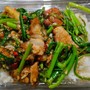 ข้าวราดผัดผักบุ้งหมูกรอบ