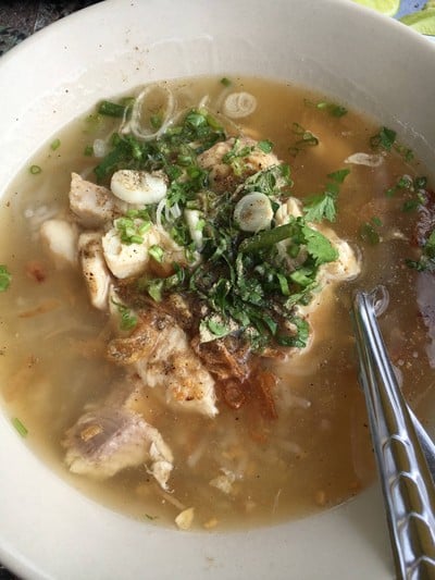 ร้านปลากิมปลา คุณใจ อยู่ในตลาดเช้าชุมชนญวณภายในสามเสนซอย 13 เป็นร้านก๋วยจั๊บญวณที่แปลก เพราะที่นี่ใส่เนื้อปลาช่อนเป็นชิ้นๆ และไม่คาวด้วยครับ ถือเป็นร้านที่ผมทานบ่อยอีกร้านครับ ตั้งแต่สมัยเรียนมัธยม เพราะโรงเรียนผมอยู่ริมถนนสามเสน เช้าๆก็มักจะเดินเข้ามาหาของทานก่อนเข้าโรงเรียน ร้านนี้เปิดเช้าครับ เดินเข้ามาก็จะเห็นเด็กนักเรียนนั่งทานกันเยอะมาก ในช่วงเช้าๆๆ เพราะร้านนี้อยู่ใกล้โรงเรียนดังๆ โรงเ...อ่านต่อ