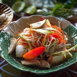 เป็นร้านที่เป็นกระแสตอนนี้เลยค่ะ คนเยอะรถเยอะมาก เราไปถึงร้านประมาณบ่ายสองคนยังเต็มร้าน แต่ไม่ลดละมาแล้วต้อง ทานให้ได้ กางเมนูแพลมสั่งอาหารเลยค่ะ จัดไปของทานเล่นเป็นแหนมหมูทอด และทอดมัน ปลากาย ตามด้วยไก่อบสูตรของร้านจานนี้เด็ดมากไม่ต้องจิ้มน้ำจิ้มก็อร่อย ส่วนเมนูอื่นๆต้องรอสักพักเลยค่ะเพราะคนเยอะมากเมนูค่อยๆทยอยออก หลังจากนั่งรอสักพัก เมนูที่เราสั่ง ก็มาเสิร์ฟ กุ้งต้มน้ำปลา ส้มตำ แมงกระพรุนก...อ่านต่อ