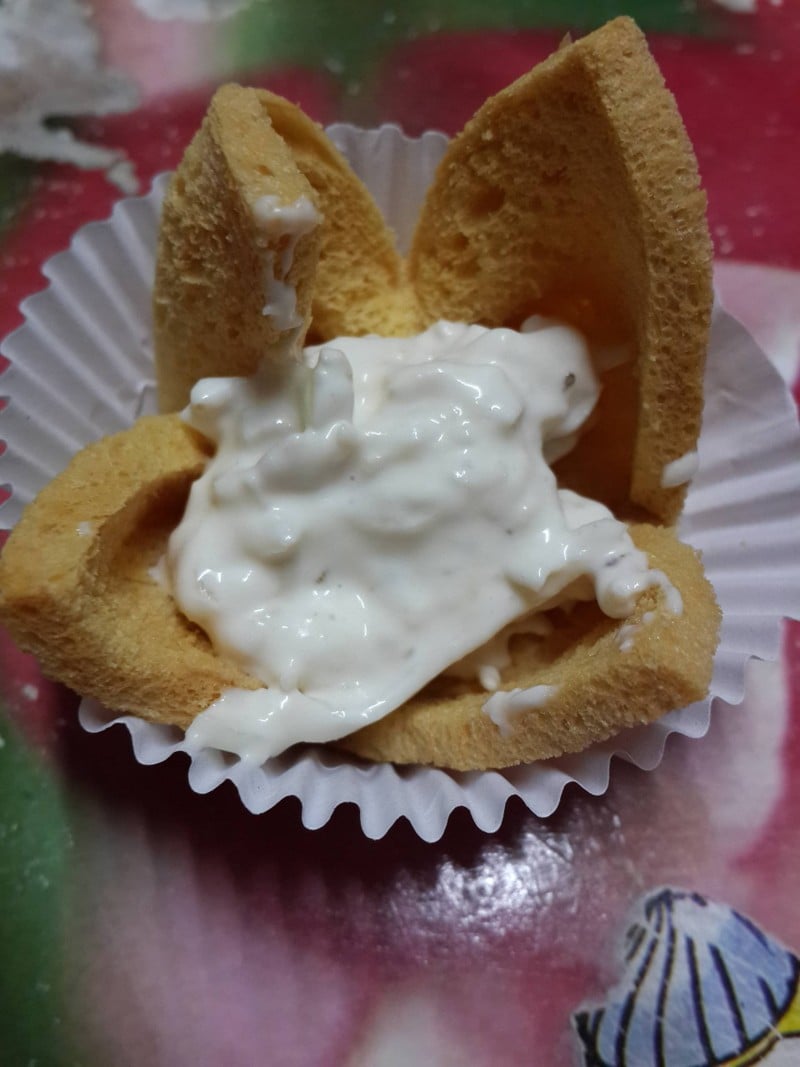 เพิ่งจะมีโอกาสได้ชิมของขนมร้านนี้ ครั้งนี้ลองชิมเป็นกระทงทองทองทูน่า ตัวขนมปังอบมากรอบคล้ายๆกรูตอง กรอบๆ ตัวไส้ทูน่าเหมือนทูน่าสเปร๊ดรสอมหวานนิดหน่อย กลมกล่อมกำลังดี ทานไปทานมาตัวขนมปังกรอบหมดก่อนไส้ทูน่าดูเพิ่มเติม
