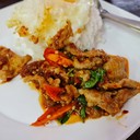 ขับหาร้านข้าวตอนเช้ากิน เจอร้านเปิดใหม่เลยลองมาชิม สั่งกะเพราหมูหมึกไข่เจียว 60.- หนักไปทางซีอิ๊วดำ พริกแกงหมูไข่ดาว 50.- หมูชิ้นใหญ่และเหนียว เจอเส้นผม1เส้น รสชาติออกหวาน รวมๆแล้วธรรมดา ไม่มีอะไรโดดเด่น น้ำปลาพริกดูไม่สด เหมือนค้างหลายวัน หาที่จอดรถข้างทาง ยากหน่อยดูเพิ่มเติม
