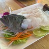 หมึกเป็นซาซิมิ บางสำเหร่ทะเลสด มีอาหารทะเลหลายอย่างให้เลือก ทั้งปลาทั้งปู แต่จะเน้นไปทางหมึกซาซิมิ ราคาไม่แพง คุ้มค่าา