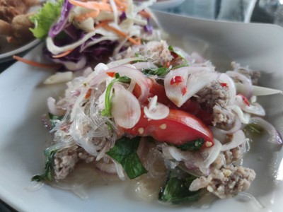 100% ของรีวิวบอกว่าร้านนี้เหมาะกับ จานด่วนสามชั้นทอดน้ำปลา ชิ้นใหญ่ไปนิดแต่รสชาติโอเค..ยำวุ้นเส้น รสชาติโอเค เปรี้ยวหวาน..กระเพรากุ้ง กระเทียมกุ้ง และพริกเผาหมู รสออกเค็มนำ ทางร้านแจ้งว่ามีการเปลี่ยนเครื่องปรุงซึ่งครั้งต่อไปน่าจะไม่เค็มนำแล้ว..เมนูเยอะทั้งจานเดียวและกับข้าว..ราคาปกติ..การบริการโอเค..มีที่จอดรถข้างร้านดูเพิ่มเติม