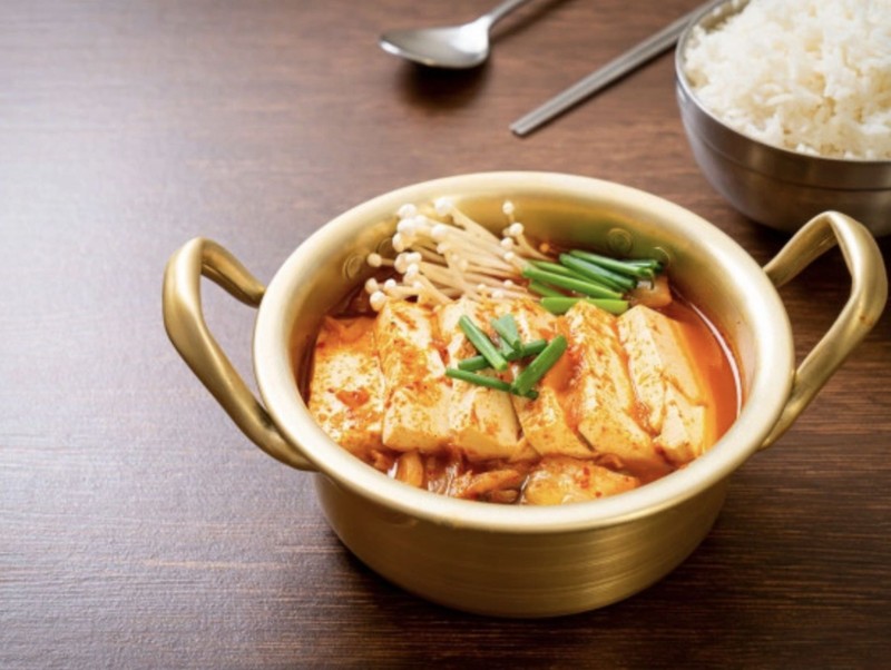 ซุปกิมจิ แฮมหมู ไข่ และเต้าหู้อ่อน (ถั่วเหลือง)