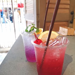 คาเฟ่เปิดใหม่ในย่านตลาดน้อย แต่กระแสแรง คนเต็มร้านเลย เพราะบรรยากาศเป็นแนวบ้ทนเก่า ปูนเปลือย ถ่ายรูปแล้วดูชิคดี เลยทำให้มีคนมาชิมและแชะกันเยอะเลยค่ะ ด้วยความที่เพิ่งเปิด ก็เลยยังมีแค่เมนูเครื่องดื่มขายค่ะ เราเลยสั่งเมนูสดชื่นไป 2 เมนู สีแดงกับสีม่วง ชื่อ Butterfly Linn กับ Ruby Tight รสเปรี้ยวๆหวานๆ ซ่าๆของโซดา ถ่ายรูปสวย เติมความสดชื่นดีค่ะ ใครชอบถ่ายรูป ตามมากันได้นะคะ