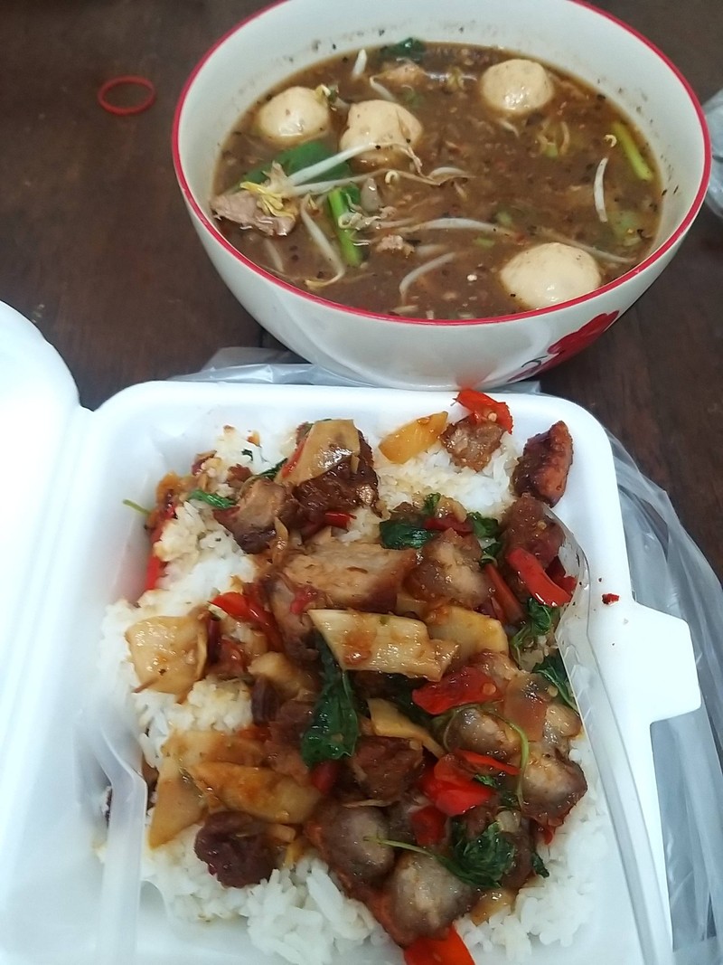 อาหารตามสั่ง,ป่า อิ่มจุก (คานหาม)ฟรี!!น้ำซุป ผัก น้ำพริก(ตามสั่ง ผัดไท-หอยทอด)