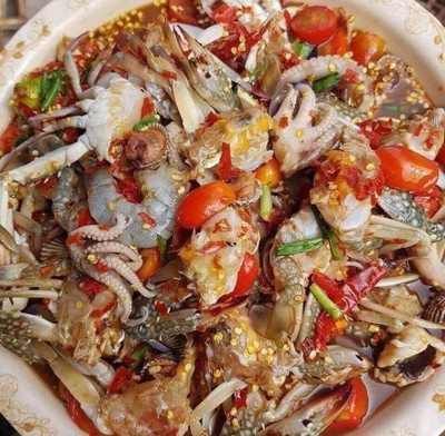 เกาเหลาตะแครงหอย ปูม้าสด กุ้งสด ปลาหมึก