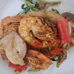 ร้านนี้ป้ายเด่น สีแดง ตัวหนังสือชัดตระหง่าน แต่ในร้านแลดูมืดๆ เปิด 11:30 - 20:30 น. (ส่วนวันหยุด/ปิดร้านแล้วแต่จะหยุด ไม่ได้กำหนดวัน) •หมี่ผัดกระเฉดกุ้ง 70฿ เส้นหมี่ผัด/ยอดกระเฉด/กุ้งตัวโต 3 ตัว ผัดมารสชาติดีเยี่ยม ออกมันไปหน่อย แต่รวมๆเผ็ด อร่อย กลมกล่อม รสลงตัว กินแบบไม่ต้องปรุงใดๆทั้งสิ้น กุ้งสดมาก ตัวโตเต็มปากเต็มคำ •ผัดซีอิ้วเส้นใหญ่ทะเล 70฿ เส้นใหญ่ผัด/คะน้าหั่น/กุ้งตัวโต 2 ตัว/ปลาหมึก...อ่านต่อ
