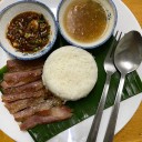 ไม่แน่ใจว่าเชฟแชมป์เป็นใคร แต่เห็นป้ายหน้าร้านก็เลยเก็บไว้ในใจก่อน เมื่อได้โอกาสจึงโทรไป ปรากฏว่าเป็นแม่ของเชฟแชมป์หรือเปล่าไม่รู้ที่รับสาย และรับออเดอร์ ครั้งนี้ลองสั่งคอหมูย่างสองขีดมาชิมก่อน ครั้งหน้าค่อยลองรายการอื่นๆ ท่านที่สนใจอุดหนุนกิจการของท้องถิ่นเดียวกันในบางกรวย ก็ลองสั่งกันได้ พิกัดอยู่ตรงข้ามมินิบิ๊กซี ที่เดียวกับ NK การช่างดูเพิ่มเติม