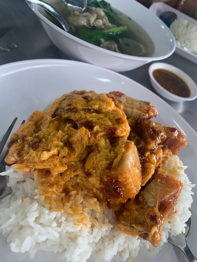 ชื่อ ต๋องริมทาง ผ่านตามาสักพัก วันนี้ลองแวะทาน ตรงสาขา ใกล้สะพานเจษฎาบดินร์ ร้านมีที่จอดรถสะดวก สบาย เห็นเมนู และราคา ตกใจเล็กน้อย พวกที่เป็นกับ มีปู ราคา 300-400 แต่ก้อลองสั่ง ไข่ข้นปูมาดู ส่วนพวกอาหารจานเดียว ราคาโอเค สั่ง ข้าวราดโบ๋กรอบ ข้าวกุ้งผัดพริกสด และสั่งต้มแซ่บกระดูกหมู ไข่ข้นปู คุณภาพสมราคา กรรเชียงปูก้อนใหญ่ เยอะ สดดี คำแรกๆ อร่อยมาก แต่พอกินเยอะๆชักเลี่ยนๆ อาหารจานเดียว รสชาติด...อ่านต่อ