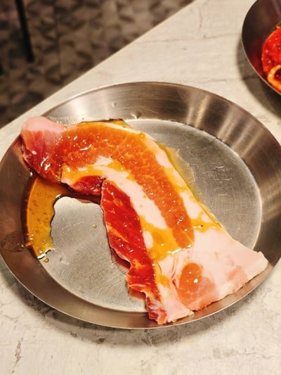 มาทานครั้งแรกชอบมากค่ะ ราคาเริ่มร้นที่ 449 บรรยากาศร้านชิลมาก นั่งสบาย เนื้อวัวดีมาก ย่างออกมายังหอมและฉ่ำอร่อยมาก ซีฟู๊ดก็สด มีแซลมอน หอยเชลล์ ปลาหมึก มีเซ็ตเนื้อหมูหลายแบบ ชอบหมูสามชั้นมาก ตอนไปทานสั่งชีสเพิ่มได้ไม่อั้นเลย แต่ที่ประทับใจสุดคือกุ้งดองซีอิ๊วเกาหลี กินกับน้ำจิ้มซีฟู๊ดแซ่ปๆ กุ้งตัวโตมาก สดมาก แกะเปลือกมาให้แล้วด้วยสั่งกี่จานก็ได้ และก็เมนูเครื่องเคียง เยอะสุดๆ ชอบต๊อกป๊อกกีชีส กั...อ่านต่อ