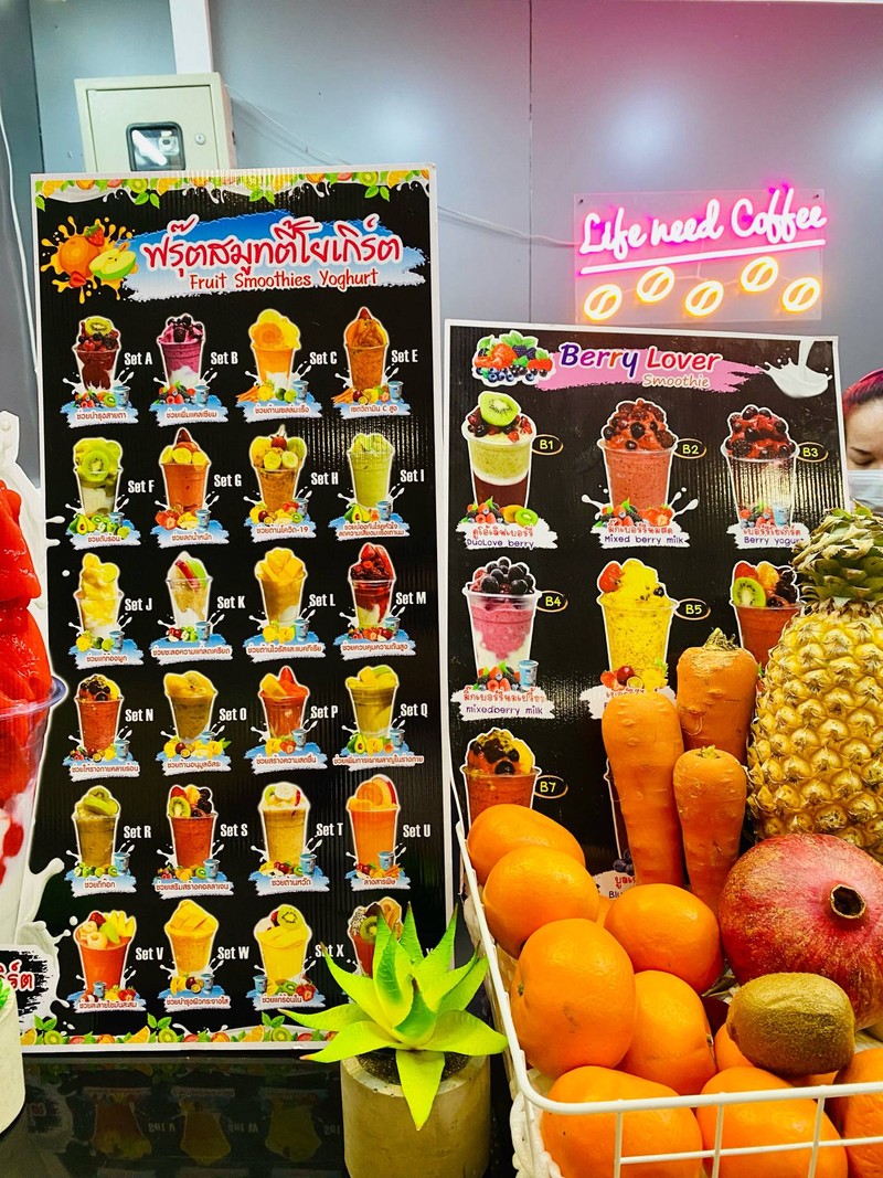ร้านน้ำผลไม้ปั่น รสชาติดี ราคาถูก อยู่ที่ชั้นใต้ดิน อาคารผู้โดยสาร ใกล้กับสถานีรถไฟแอร์พอร์ตลิงค์ มีเมนูให้เลือกเยอะมาก ลูกค้าส่วนมากจะเป็นพนักงานที่ทำงานในสนามบิน หรือ สายการบิน ถ้ามาช่วงที่คนสั่งเยอะอาจจะรอคิวนานหน่อย สามารถขอบัตรสะสมแต้มได้ ซื้อ1แก้ว จะได้ตราประทับ1อัน วันนี้สั่ง ลิ้นจี่โยเกิร์ตปั่นหวานน้อย กับ เลิฟเวอร์มิ๊กเบอรี่ อร่อยทั้ง2แก้ว รสชาติดีคุ้มราคามากค่ะ ดื่มละสดชื่นดีดูเพิ่มเติม