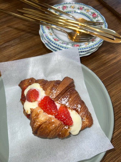 check in แนะนำกันอีกร้านกับ Croissant และขนมปังอบในหลายรูปแบบ ที่พร้อมทานกับกาแฟ เครื่องดื่มเย็น ร้านขนาดไม่ใหญ่มากย่านศูนย์วิจัย หน้าร้านจอดได้ 2-3 คัน ทางร้านมี croissant อบใหม่ในหลายแบบ ทั้ง แบบธรรมดา แฮมชีส ครีมสตอเบอรี่ และ อัลมอนด์ สามารถนั่งทานในร้านหรือ สั่งกลับบ้านได้. กาแฟ ชาเขียวหรือ กาแฟยอดฮิตอย่าง Dirty Coffee ก็มีให้ เลือกทานกันดูเพิ่มเติม