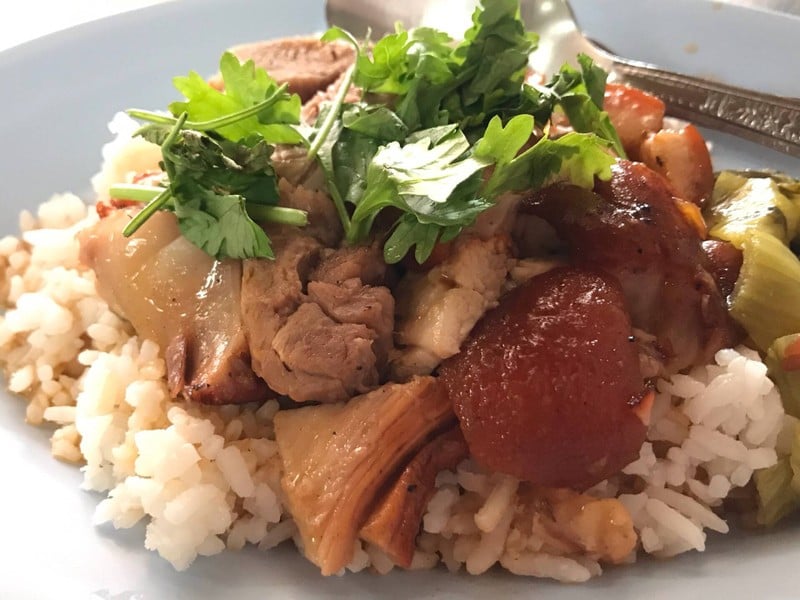 ร้านสหายโภชนา ข้าวขาหมูฮ่องเต้ สีน้ำราดเข้มข้น น่าสนใจ ขาหมูเนื้อหนัง 50 บาท พร้อมข้าวสวย 1 ถุง 10 บาท เนื้อขาหมูยังไม่ค่อยเปื่อยและนุ่มครับ หนังนุ่มละลาย น้ำราดหวานเค็ม กลิ่นหอม ใช้ได้เลยแหละ แต่ขาหมูยังไม่เปื่อยเท่าที่คิดไว้ ผักกาดดองไม่เหม็น รสเปรี้ยวกำลังดี ผักกาดดองกรอบๆดูเพิ่มเติม