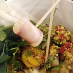 ร้านตั้งอยู่ที่ตลาด62 block เป็นร้านขายปลาหมึกย่างค่ะ โดยก็จะมีปลาหมึกหลายๆแบบให้เลือกนะคะตั้งแต่ส่วนเนื้อปลาหมึก เอ็นแก้วกรุบๆ หนวดหมึกทาโกะ ไข่ปลาหมึก หมึกกระดองตัวเล็ก หมึกตัวใหญ่ และมีกุ้งด้วยค่ะ ราคาจะเริ่มที่ไม้ละ 10 บาทเป็นต้นไปตามแต่ประเภทและปริมาณซึ่งก็พอเหมาะพอดีอยู่ ซึ่งร้านย่างมาโอเคเลยค่ะ ไม่เหนียว ส่วนน้ำจิ้มนี้จะไม่เผ็ด รสออกเปรี้ยวเป็นหลัก ก็แล้วแต่คนชอบนะคะ ผักแก...อ่านต่อ